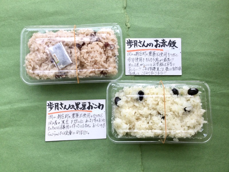 *お赤飯のごま塩は、有機いりごま、自然塩「石垣」を使った歩月さんの手づくり